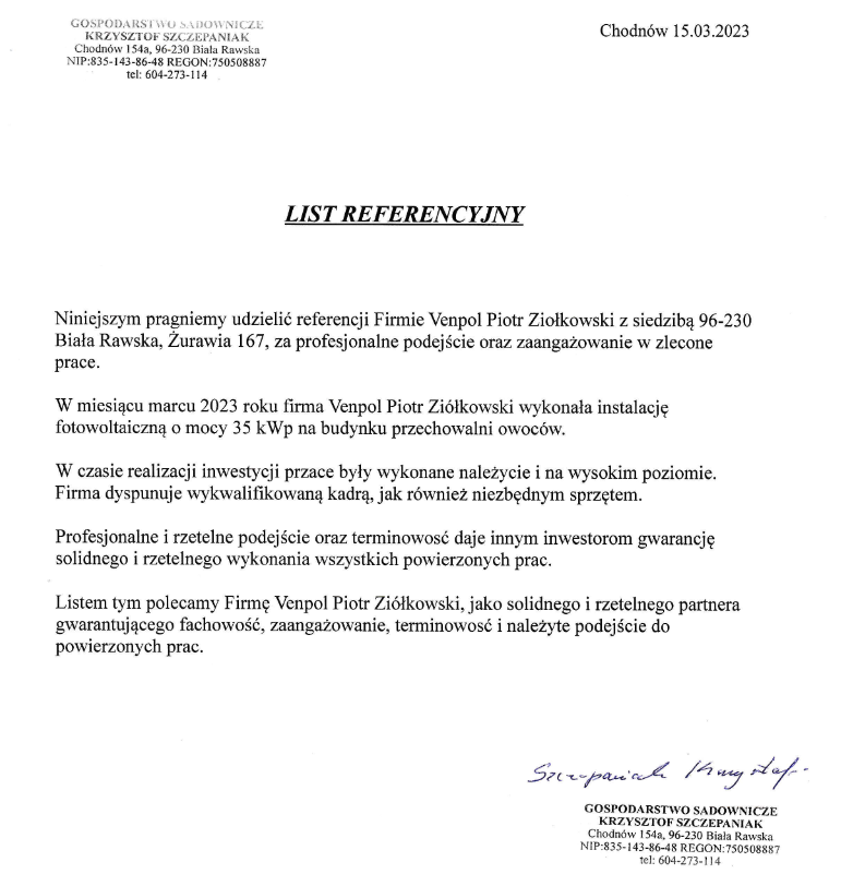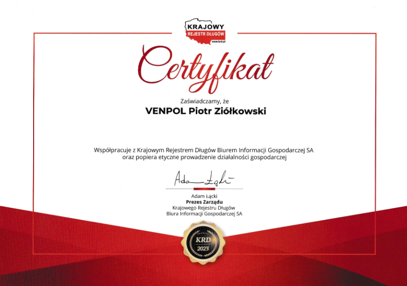 Polecam współpracę z Firmą Venpol głównie ze względu na: profesjonalizm, odpowiedzialność, terminowość wykonania zaplanowanych prac, otwartość i cierpliwość na pytania i sugestie inwestora, oraz wysoką kulturę osobistą.